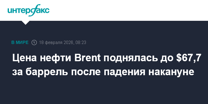 Цена нефти Brent поднялась до $67,7 за баррель после падения накануне