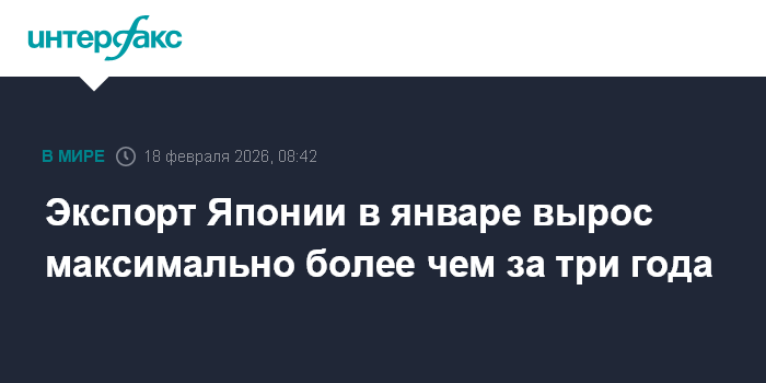 Москва. 18 февраля. INTERFAX.RU - Экспорт Японии в январе увеличился на максимальные с ноября 2022 года 16,8% относительно того же месяца предыдущего года и составил рекордные 9,19 трлн иен ($59,83 млрд), сообщило министерство финансов страны.