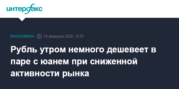 Москва. 18 февраля. INTERFAX.RU - Китайский юань подрос на Московской бирже при открытии торгов в среду, рубль немного опустился при сниженной активности рынка.