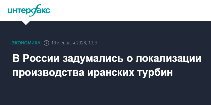 Москва. 18 февраля. INTERFAX.RU - Россия заинтересована в локализации производства иранских турбин на своей территории, сообщил журналистам министр энергетики Сергей Цивилев на полях межправительственной комиссии двух стран, сопредседателем которой он является.