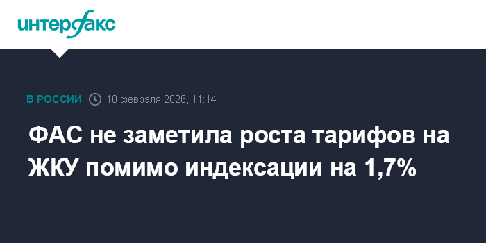 Москва. 18 февраля. INTERFAX.RU - Федеральная антимонопольная служба заявила об отсутствии других изменений тарифов с 1 января 2026 года, кроме ранее принятой корректировки стоимости коммунальных услуг на 1,7%.
