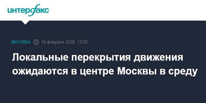 Локальные перекрытия движения ожидаются в центре Москвы в среду