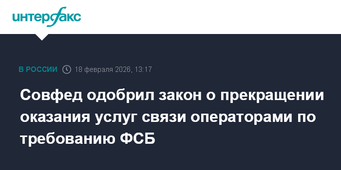 Москва. 18 февраля. INTERFAX.RU - Совет Федерации на заседании в среду одобрил принятый Госдумой накануне закон об уточнении обязанностей операторов связи.