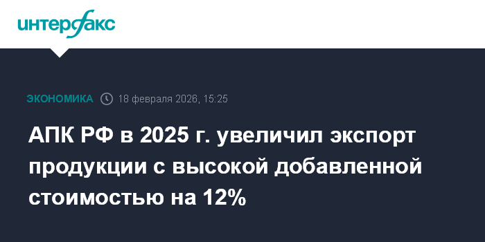 АПК РФ в 2025 г. увеличил экспорт продукции с высокой добавленной стоимостью на 12%