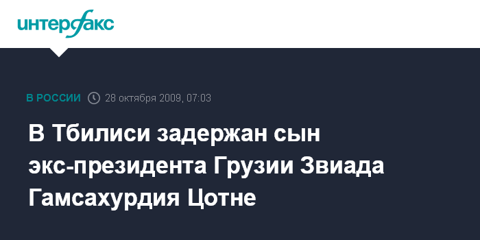 Тбилиси. 28 октября. ИНТЕРФАКС - Сын первого президента Грузии Звиада Гамсахурдия Цотне Гамсахурдия был задержан в ночь на среду в Тбилиси сотрудниками полиции после того, как он ранил своего друга Давида Баджелидзе.