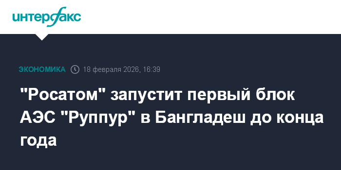 Москва. 18 февраля. INTERFAX.RU - "Росатом" приближается к началу пусковых работ на АЭС "Руппур" в Бангладеш, ввод в эксплуатацию первого энергоблока планируется до конца 2026 года, рассказал изданию "Страна Росатом" гендиректор госкорпорации Алексей Лихачев.