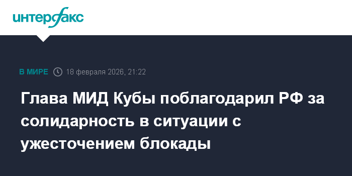 Москва. 18 февраля. INTERFAX.RU - Куба благодарна руководству России за солидарность в ситуации с ужесточением блокады и энергетической осадой острова, заявил глава МИД страны Бруно Родригес.