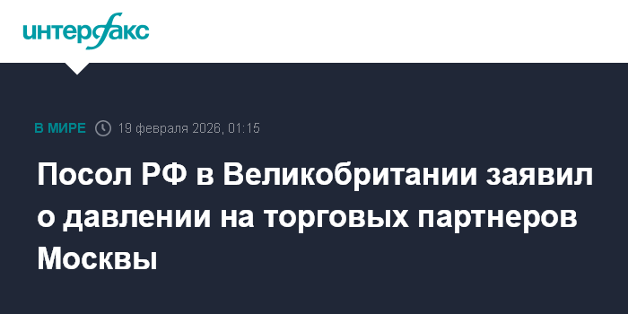 Посол РФ в Великобритании заявил о давлении на торговых партнеров Москвы