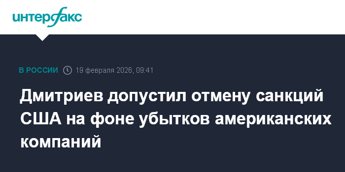 Москва. 19 февраля. INTERFAX.RU - Спецпредставитель президента РФ по экономическому сотрудничеству с зарубежными странами, глава РФПИ Кирилл Дмитриев считает, что США отменят санкции против РФ, поскольку на фоне рестрикций американские компании несут крупные убытки.