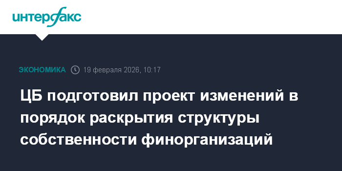 Москва. 19 февраля. INTERFAX.RU - Банк России опубликовал проект указания, вводящий обновленный порядок раскрытия информации о структурах собственности финансовых организаций, вступление в силу изменений предусматривается с 1 января 2027 года.