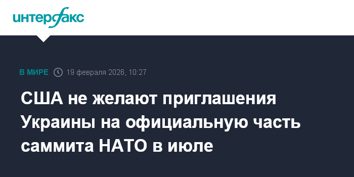 Москва. 19 февраля. INTERFAX.RU - США оказывают давление на союзников по НАТО, чтобы Украине и партнерам из Индо-Тихоокеанского региона не направляли приглашений на официальные встречи на саммите альянса 7-8 июля в Анкаре, сообщает в четверг Politico.
