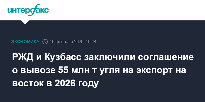 "Правительство Кузбасса обратилось в ОАО "РЖД" в декабре 2025 года с проектом соглашения (...), предусматривающего предъявление и гарантированный вывоз в 2026 году каменного угля из Кузбасса на экспорт в восточном направлении в объеме не менее 60 млн тонн", - сообщали "Интерфаксу" в январе в министерстве угольной промышленности региона.