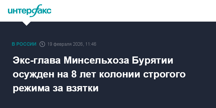 Экс-глава Минсельхоза Бурятии осужден на 8 лет колонии строгого режима за взятки