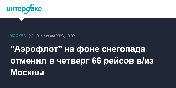 Москва. 19 февраля. INTERFAX.RU - Более 60 рейсов "Аэрофлота" и его дочерней авиакомпании "Россия" из Москвы и в направлении столицы отменены в четверг, следует из данных онлайн-табло "Аэрофлота".