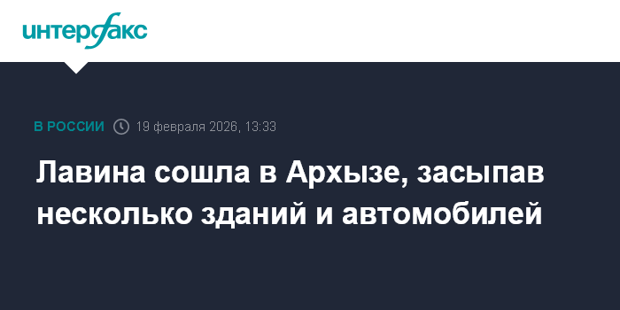 Москва. 19 февраля. INTERFAX.RU - Снежная лавина сошла в четверг в поселке Архыз Зеленчукского района Карачаево-Черкесии, сообщает следственное управление СКР по республике.
