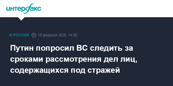 Москва. 19 февраля. INTERFAX.RU - Президент РФ Владимир Путин попросил Верховный суд вести мониторинг сроков рассмотрения дел в отношении обвиняемых, содержащихся под стражей.