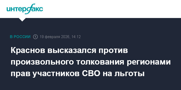 Краснов высказался против произвольного толкования регионами прав участников СВО на льготы