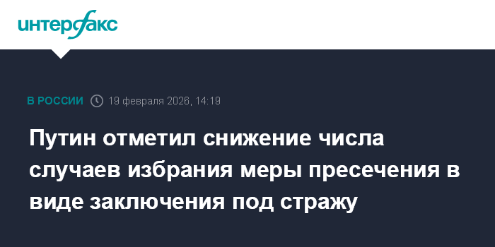 Москва. 19 февраля. INTERFAX.RU - Российские суды продолжают линию на гуманизацию уголовной ответственности, сокращается число случаев реального лишения свободы в качестве наказания и меры пресечения, заявил президент РФ Владимир Путин.