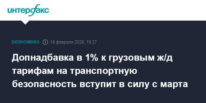 Москва. 19 февраля. INTERFAX.RU - Дополнительная надбавка в 1% к грузовым железнодорожным тарифам в РФ заработает с весны.