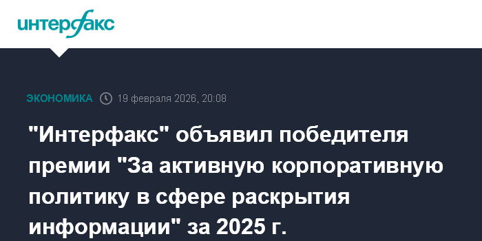 "Интерфакс" объявил победителя премии "За активную корпоративную политику в сфере раскрытия информации" за 2025 г.