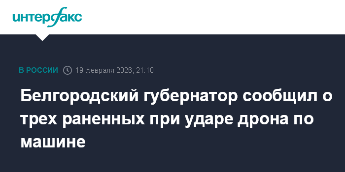 Москва. 19 февраля. INTERFAX.RU - В Грайворонском округе Белгородской области FPV-дрон нанес удар по автомобилю в селе Замостье, пострадали три человека, сообщил губернатор региона Вячеслав Гладков.