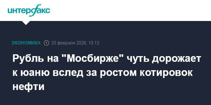 Москва. 20 февраля. INTERFAX.RU - На открытии торгов на "Московской бирже" рубль незначительно укрепляется к юаню на фоне растущих котировок нефти.