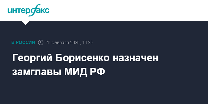 Москва. 20 февраля. INTERFAX.RU - Президент РФ Владимир Путин своим указом назначил Георгия Борисенко заместителем министра иностранных дел РФ.