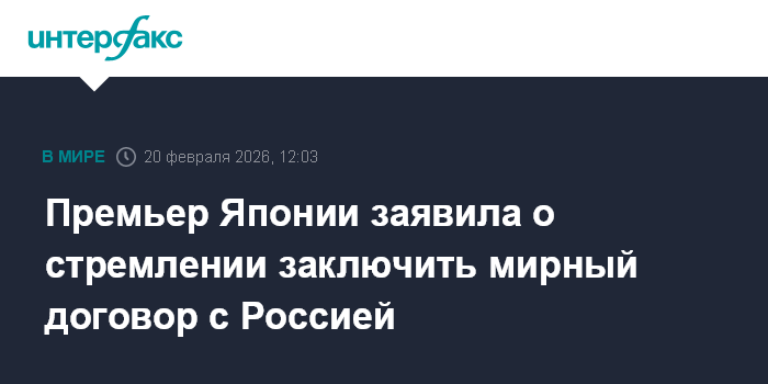 Москва. 20 февраля. INTERFAX.RU - Премьер Японии Санаэ Такаити, переизбранная на этот пост в среду, заявила в программной речи в парламенте в пятницу, что желает урегулировать территориальный спор с РФ и заключить с ней мирный договор.