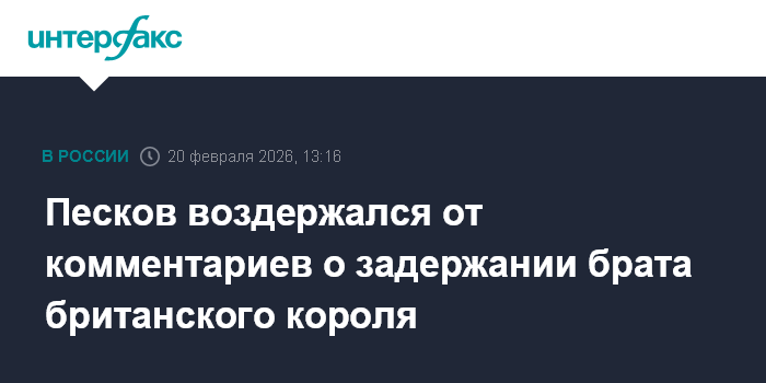 Москва. 20 февраля. INTERFAX.RU - В Кремле не стали комментировать задержание в четверг в связи с подозрением в ненадлежащем поведении на госслужбе Эндрю Маунтбеттен-Виндзора - младшего брата короля Великобритании Карла III.