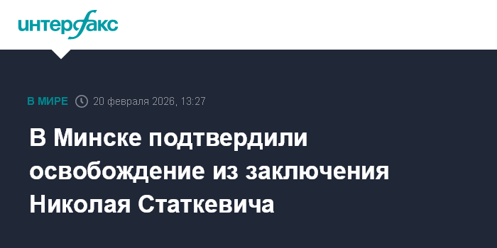 Москва. 20 февраля. INTERFAX.RU - Президент Белоруссии Александр Лукашенко выполнил просьбу родственников осужденного на 14 лет оппозиционера Николая Статкевича отпустить его из заключения после болезни, сообщила пресс-секретарь главы государства Наталья Эйсмонт. Об этом сообщил телеграм-канал "Пул Первого".