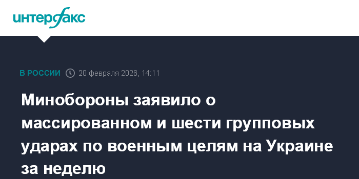 "С 14 по 20 февраля в ответ на террористические атаки Украины по гражданским объектам на территории России Вооруженными силами Российской Федерации нанесены массированный и шесть групповых ударов", - говорится в сообщении.