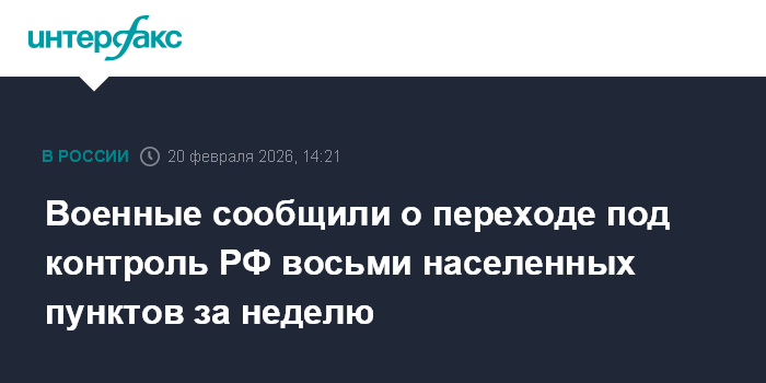 Москва. 20 февраля. INTERFAX.RU - Российские войска в течение недели установили контроль над восемью селами в Запорожской, Сумской областях и ДНР, сообщили в Минобороны РФ в пятницу.