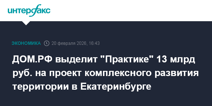 Москва. 20 февраля. INTERFAX.RU - Банк "ДОМ.РФ" предоставит уральскому девелоперу "Практика" банковское финансирование на 13,2 млрд рублей для реализации проекта комплексного развития территории (КРТ) на юге Екатеринбурга, сообщает пресс-служба девелопера.