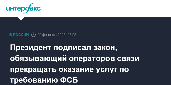 Президент подписал закон, обязывающий операторов связи прекращать оказание услуг по требованию ФСБ