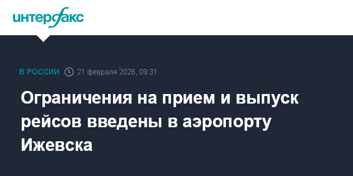 Москва. 21 февраля. INTERFAX.RU - Временные ограничения введены в аэропорту Ижевска (Удмуртия) в субботу, сообщает пресс-служба Росавиации в своем канале Мах.