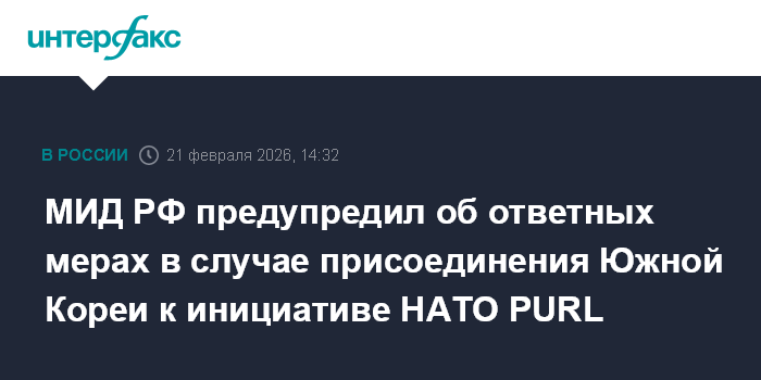 МИД РФ предупредил об ответных мерах в случае присоединения Южной Кореи к инициативе НАТО PURL