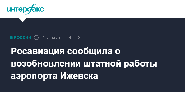 Москва. 21 февраля. INTERFAX.RU - Аэропорт Ижевска, где во второй половине дня вновь были введены ограничения, возобновил работу в штатном режиме, сообщила Росавиация.