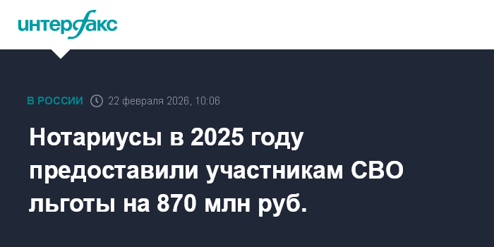 Нотариусы в 2025 году предоставили участникам СВО льготы на 870 млн руб.