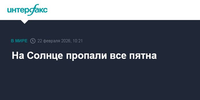 Москва. 22 февраля. INTERFAX.RU - Ни одного, даже самого небольшого, пятна не наблюдается в данный момент на обращенной к Земле стороне Солнца, сообщила в воскресенье лаборатория солнечной астрономии Института космических исследований Российской академии наук.