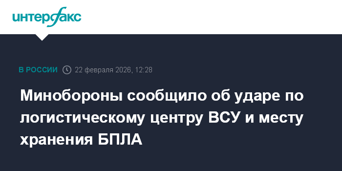 Москва. 22 февраля. INTERFAX.RU - Российские военнослужащие нанесли поражение логистическому центру и месту хранения украинских беспилотников и комплектующих к ним, сообщили в министерстве обороны РФ в воскресенье.