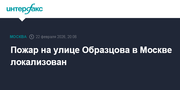 Москва. 22 февраля. INTERFAX.RU - Пожар в административном здании на улице Образцова в Москве локализован, сообщает МЧС Москвы в своем канале в MAX.