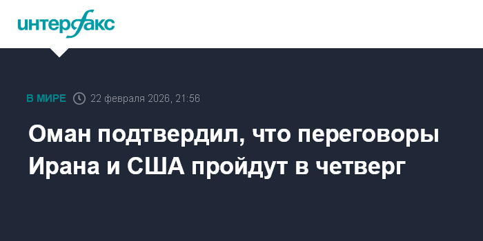 Москва. 22 февраля. INTERFAX.RU - Глава МИД Омана Бадр аль-Бусаиди подтвердил, что следующий раунд переговоров Ирана и США, как ожидается, состоится в Женеве 26 февраля.