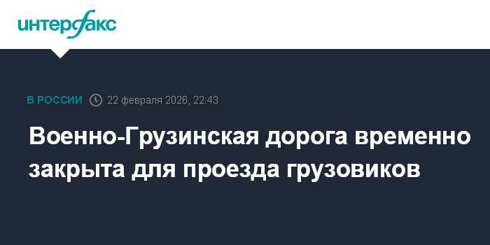 "В связи с невозможностью обеспечения безопасного проезда автотранспортных средств (...) запрещено движение большегрузного автотранспорта на участке город Владикавказ - населенный пункт Ларс в направлении на выезд из Российской Федерации с 22:30 мск 22 февраля 2026 года до особого распоряжения", - говорится в сообщении.
