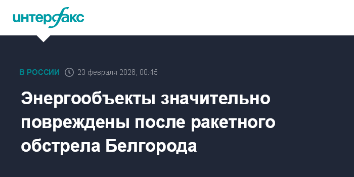 Москва. 23 февраля. INTERFAX.RU - Белгород и Белгородский округ подверглись массированному ракетному обстрелу со стороны ВСУ, есть повреждения энергетической инфраструктуры, сообщил губернатор Вячеслав Гладков.