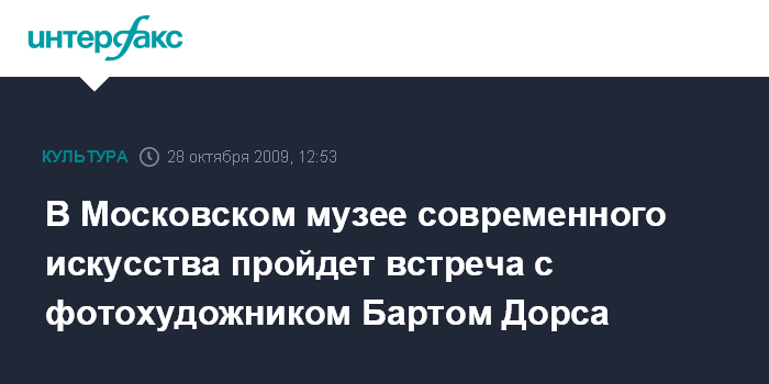 В Московском музее современного искусства пройдет встреча с фотохудожником Бартом Дорса