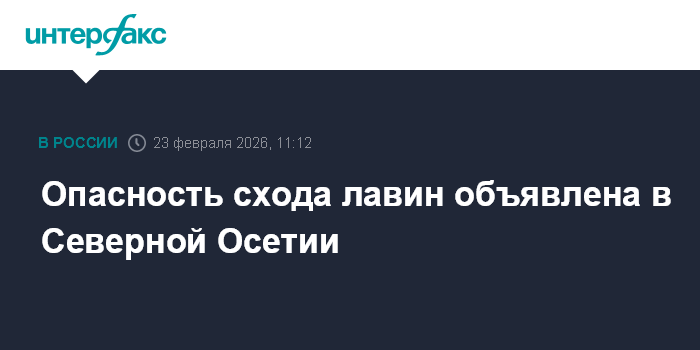 "С 18:00 мск 23 февраля до 18:00 мск 24 февраля в горных районах Республики Северная Осетия-Алания лавиноопасно, в связи с чем существует вероятность возникновения ЧС на территории Алагирского района, связанной с повреждением опор ЛЭП, домов, автомобильных дорог, мостов, повреждением объектов инфраструктуры, нарушением условий жизнеобеспечения населения и непосредственной угрозой жизни и здоровью граждан", - говорится в сообщении.