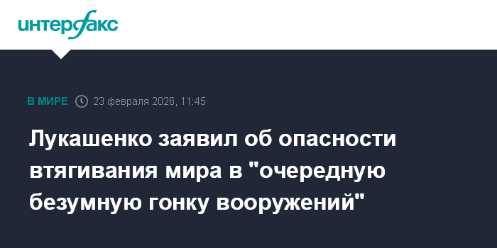 Москва. 23 февраля. INTERFAX.RU - Мир втягивается в очередную безумную гонку вооружений, в том числе ядерных, и сейчас важно сделать все, чтобы не допустить новой мировой войны, заявил президент Белоруссии Александр Лукашенко.