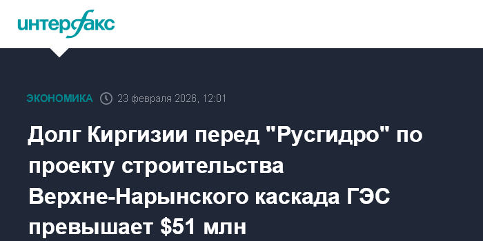 Долг Киргизии перед "Русгидро" по проекту строительства Верхне-Нарынского каскада ГЭС превышает $51 млн