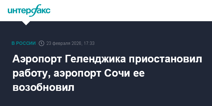 Москва. 23 февраля. INTERFAX.RU - Временные ограничения на прием и выпуск воздушных судов второй раз за день введены в аэропорту Геленджика, сообщает Росавиация в своем телеграм-канале в понедельник.