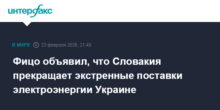 Москва. 23 февраля. INTERFAX.RU - Премьер Словакии Роберт Фицо в понедельник заявил, что выполнил свое обещание о прекращении экстренных поставок электроэнергии Киеву.